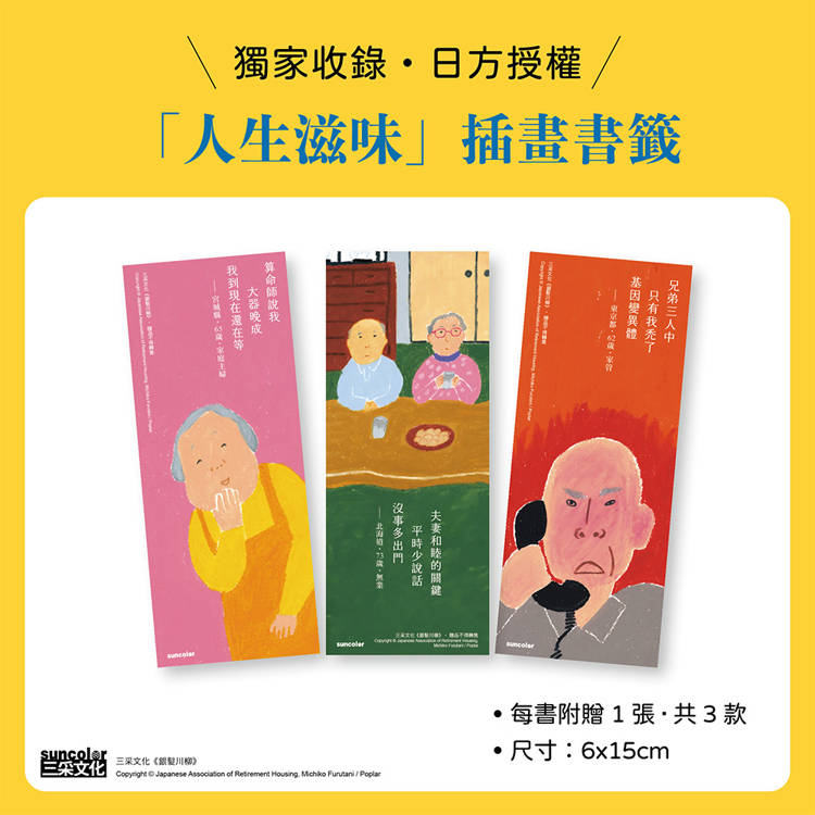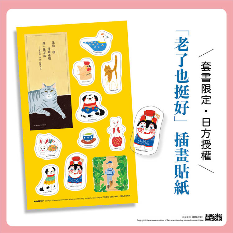 隨書附贈「人生滋味」插畫書籤,套書限量加贈「老了也挺好」防水貼紙組,送禮自用兩相宜!