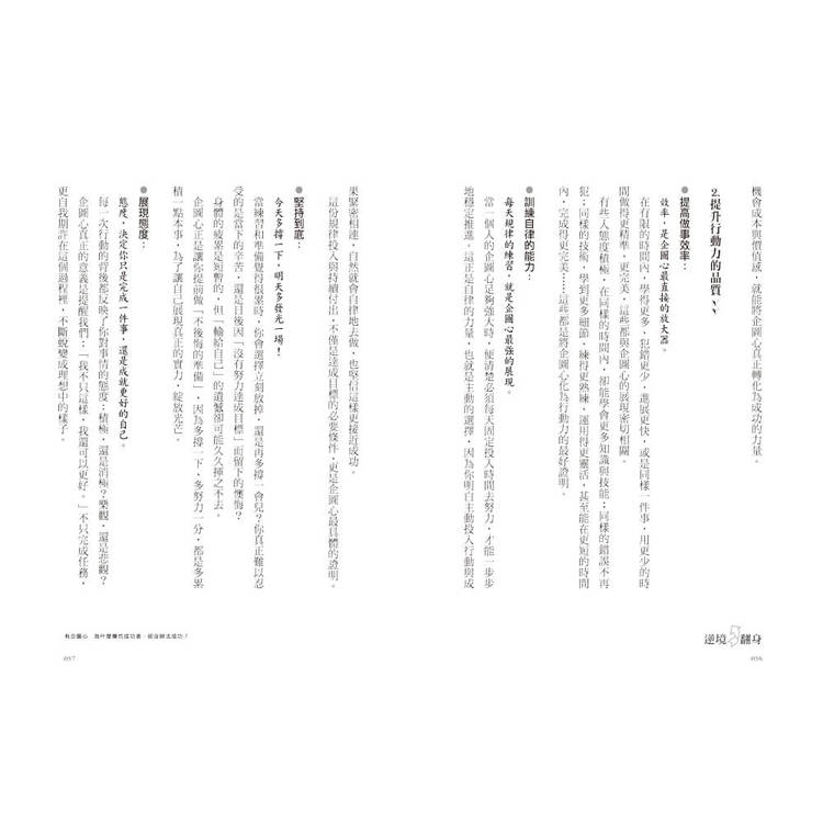 我們可能輸給很多事情:拖延、迷惘、懷疑。《逆境翻身》是關於在逆境之中,能多快從挫折裡重新找回掌控感的練習,衡量韌性的關鍵。