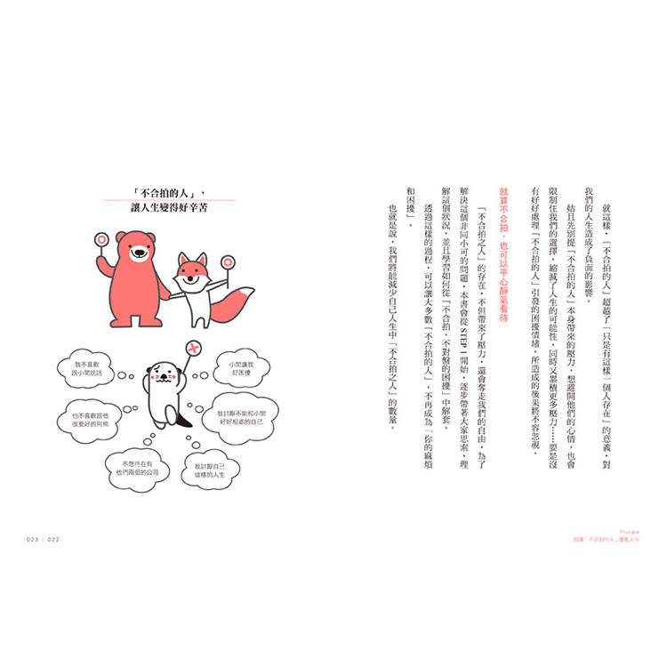 然而,若還是嚴格地要求自己「不應該覺得不合拍」,就會同樣嚴格地要求他人「應該做好身而為人該做的事」,唯有放下這樣的執念,世界才會變得更加開闊。