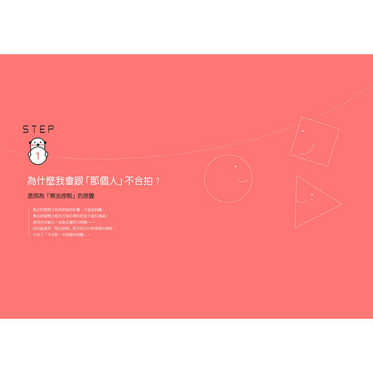 如果只是人際關係造成的壓力,呈現出來的問題可能不一而足,但這些人際壓力要是會發展成「我跟這個人不合拍!」的困擾,都是因為問題已經不再侷限於「領域受到侵害」,還摻進了自己「難以控制局面」的無力感。