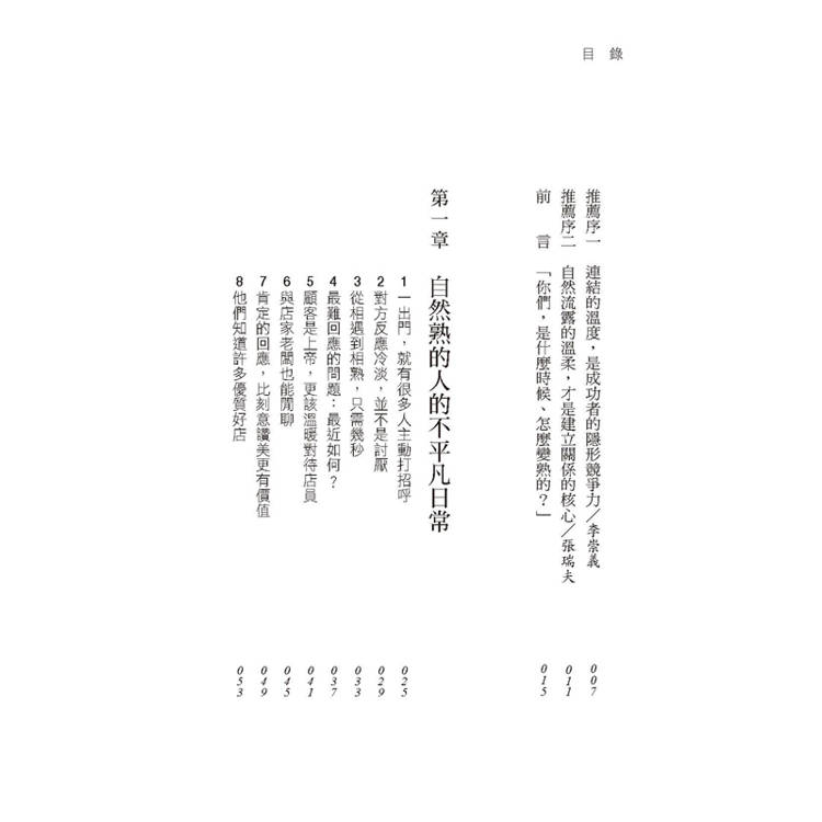 在本書中,我將不知不覺就能與人交好,稱為自然熟;而能與人自然熟的人,則稱為秒熟人。