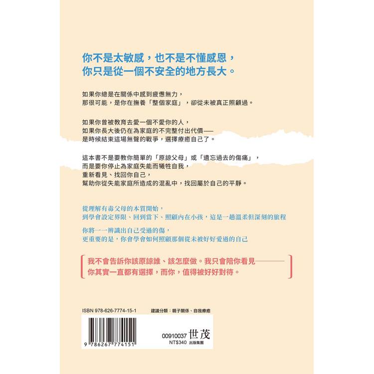 從認識「有毒父母」開始,到擁抱你的內在小孩,本書將帶領你溫柔、勇敢、完整地活出真正的自己。