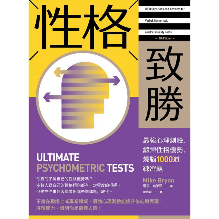 本書全方位的題型有深有淺,每個測驗都有解說。在面對工作面試、內部升遷、入學申請或專業考試,只要提前練習,就能有效掌握解題技巧與不同題型的節奏,提升作答準確度。平日常練習則能靈活思路,時刻保持腦力韌性。