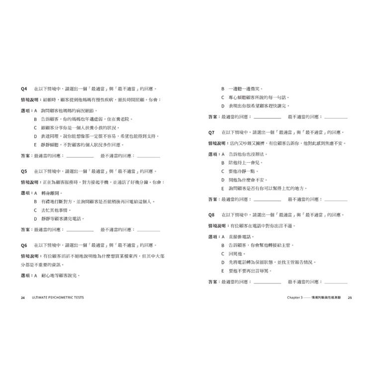 這是一本能激發挑戰心的書。它非常適合面試前練習,也能提升整體能力。超越傳統的填字遊戲與謎題,能有效訓練大腦。題目精心設計且充滿策略性,讓我一邊答題一邊訓練反應速度。每章節開頭都有題型示範與建議作答時間,可以依照書中指示進行,也能按照自己的節奏作答。這本書可以測驗能力極限。——英國讀者Ben Hull