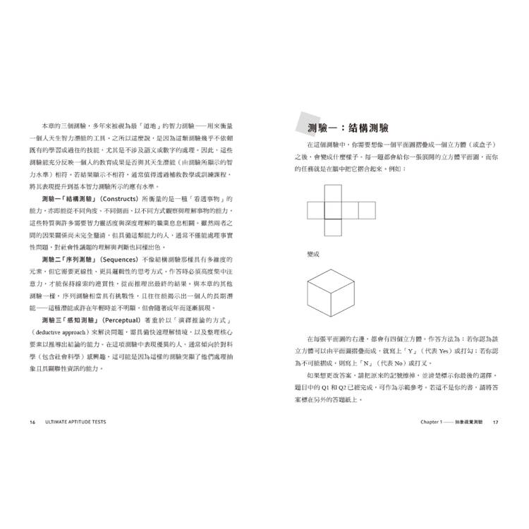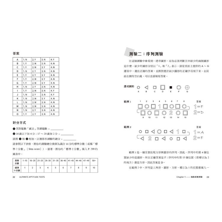 每章在一開始都會附上測驗目的的說明,而在書末也提供了計算智商(IQ)的解說與表格。透過這些資訊,你可以更清楚自己的智力優勢,並思考如何加以妥善運用。