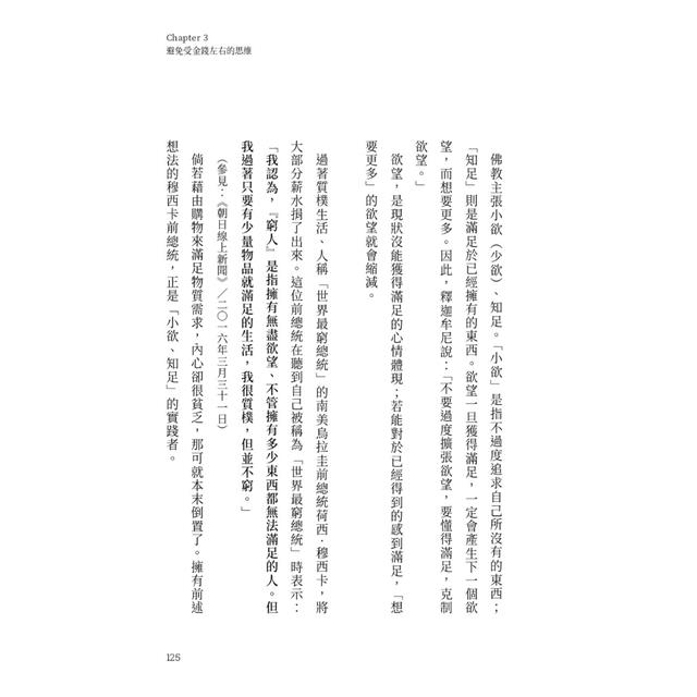 透過閱讀經書,吸收其中的智慧,就能使之成為自己的養分再付諸實踐。成為面對人生各種疑難雜症時,思考判斷的標準,從而解決自工作到人際關係的各種問題。