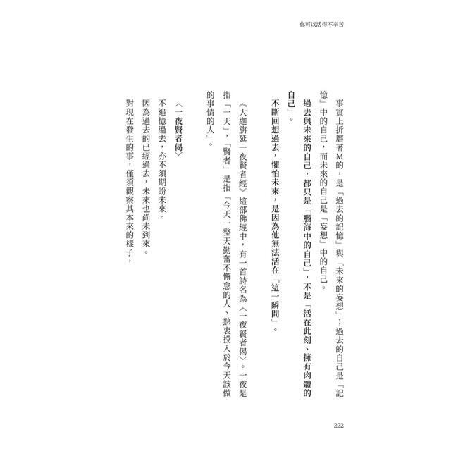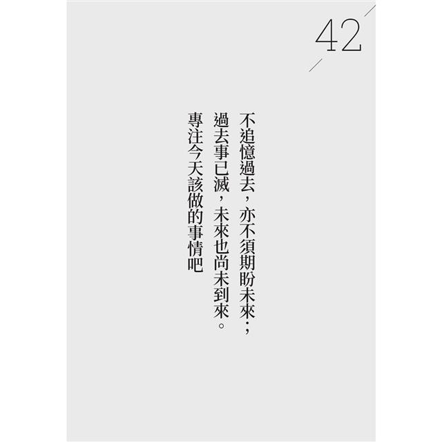 42 不追憶過去,亦不須期盼未來;過去事已滅,未來也尚未到來。專注今天該做的事情吧