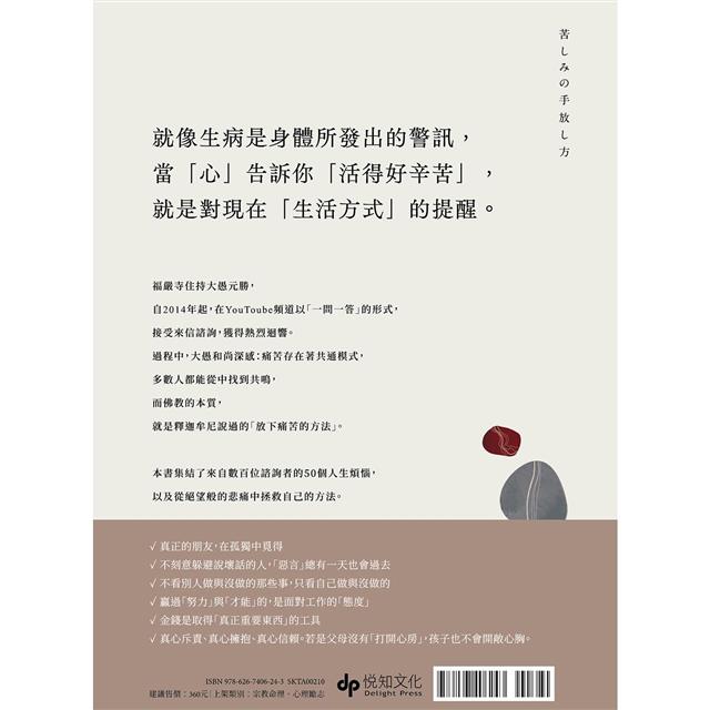 既然你拿起了這本書,是否表示此刻的你,內心也懷抱某些痛苦呢?或許不是你,而是你所珍視的人心中有「苦」。倘若如此,請翻開這本書,看看是否有引起你注意的地方。