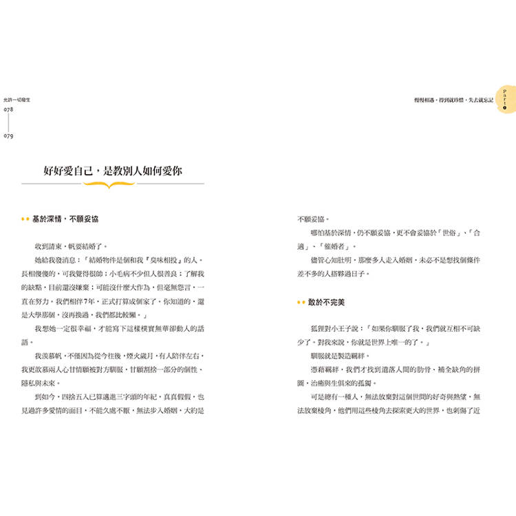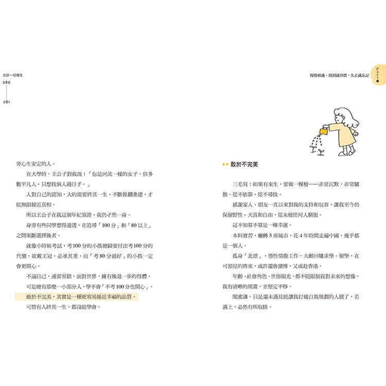 我很慶幸,能夠遇見接納我全部無知與傲慢的人,讓我擁有勇氣和底氣打開自己,不再逃避,於是有了這本書。