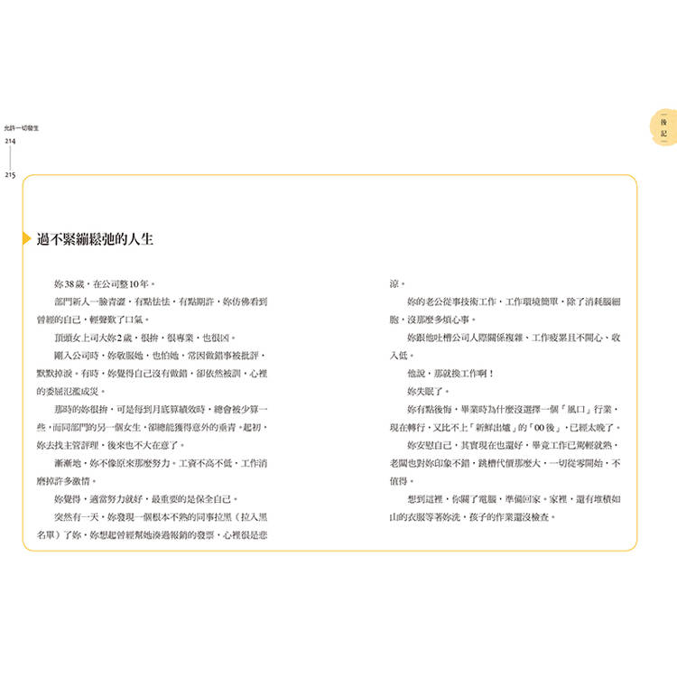 已經發生的事,再糾結也回不到過去,用「接受一切已經發生」的心境,反而能找到正面方向的路。──楊愛蓮