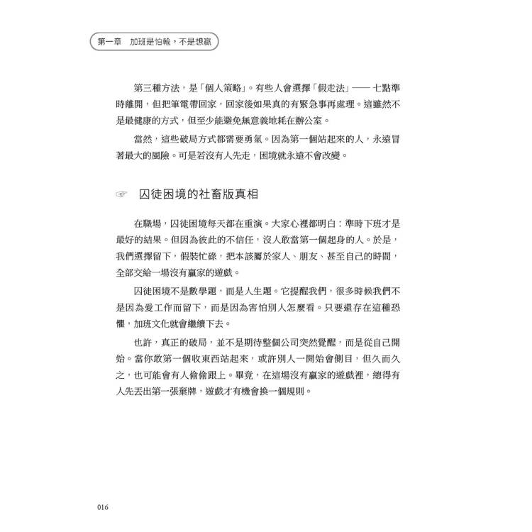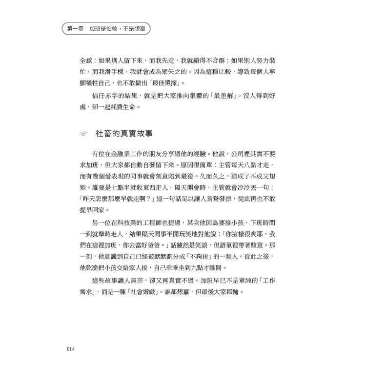 第一章 加班是怕輸,不是想贏