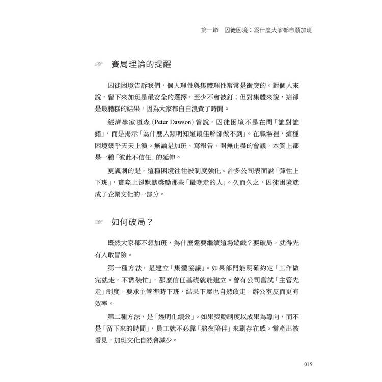第一節 囚徒困境:為什麼大家都自願加班