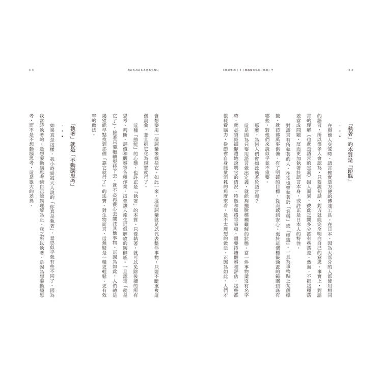 ● 執著是在理由逐漸薄弱時,依然認定「非這樣不可」的狀態,也是想要規避思考的節能手段。