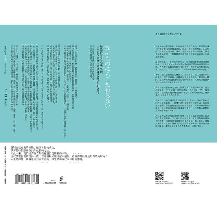 反骨生活思考家森博嗣,本著自己「盡量對任何事都不執著」的座右銘,希望提示讀者——