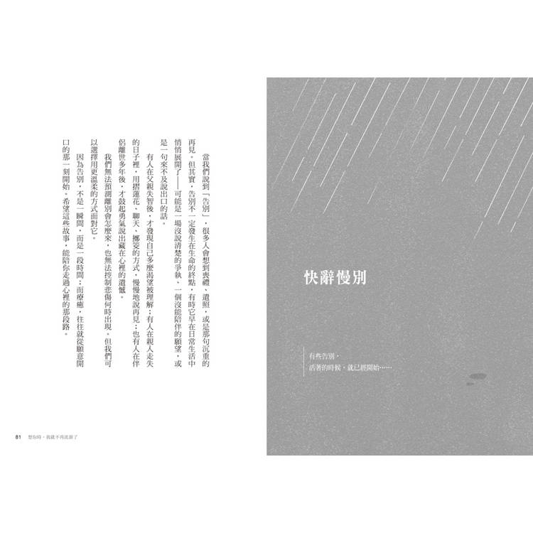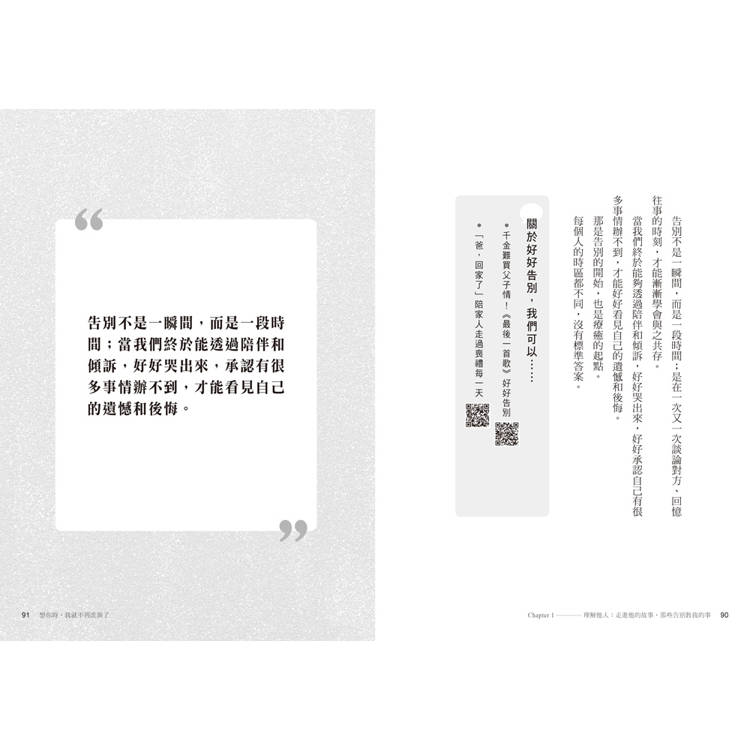 當告別時刻來臨,靜靜等悲傷走過。某一天,你會發現,想念時流下的淚也能帶著笑容,而遺憾,終於慢慢放下了。