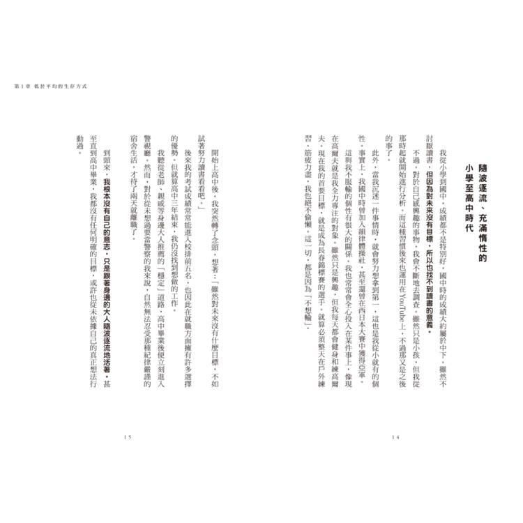 所以我不會說大家讀了這本書後會有什麼改變,甚至讀了也很可能覺得是「浪費時間」。不過書中所寫的,都是對我而言理所當然、至今仍在實行的事,以及促使我採取這些行動的想法。
