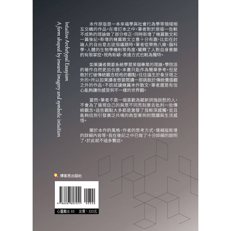 本作原版是一本幸福學與社會行為學等領域相互交織的作品。在增訂本之中,筆者對於原版一些較不成熟的理論做了部分修正,同時新增了幾篇散文和一篇後記。新增的幾篇散文立意十分有趣,比如在討論人的自由意志這個議題時,筆者從榮格八維、腦科學、人體的生物學機制等角度,闡釋了人對自身意願的有限掌控,視角新穎、表達方式也較為獨特。
