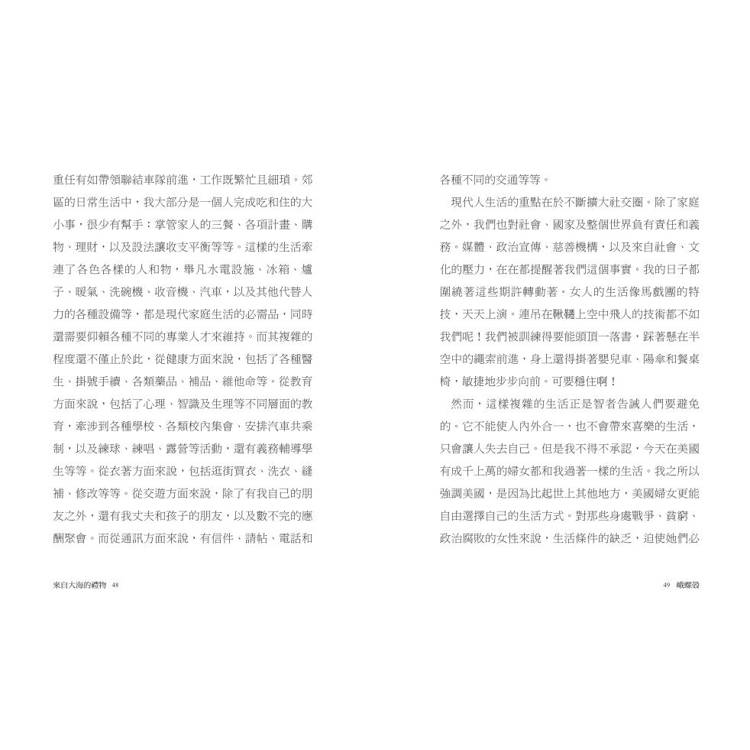 無論科技如何日新月異,我們依舊需要暫時放下手機、隔絕喧囂、享受獨處。當年的安妮.莫羅.林白得費心安排育兒幫手,打包衣物、紙張與書本,透過飛行與船隻,才能到達一座質樸的小島,安靜思索與寫作。如今,只要打開這本書,就能立刻得到她全部的同理、遠見,與深刻的智慧。