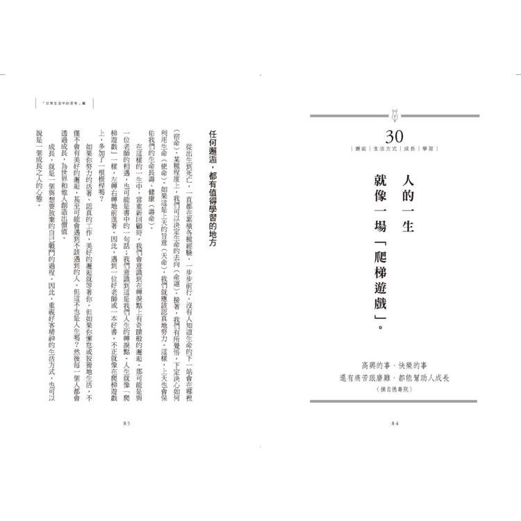 這本《以終為始的思考》,結合了許多以慈悲、利他、善行為核心的格言,以及富含寓意的短篇故事與詮釋。對於當代那些在生命中感到迷惘的年輕朋友們,會有很大的啟發與助益。作者以極為悲憫而崇高的胸懷,願將這份清醒的光芒,帶給每一位迷茫的你。這是一本值得細細閱讀、反覆咀嚼的好書。