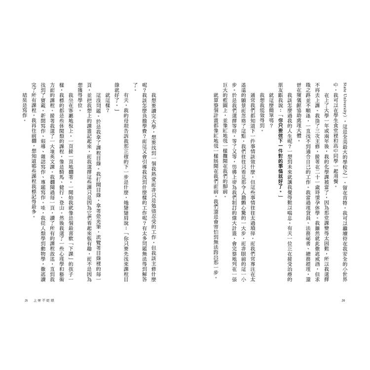 有天,我的母親告訴我那正確的下一步是什麼,她聳聳肩說:「你只要先找來課程目錄就好了。」就這樣?
