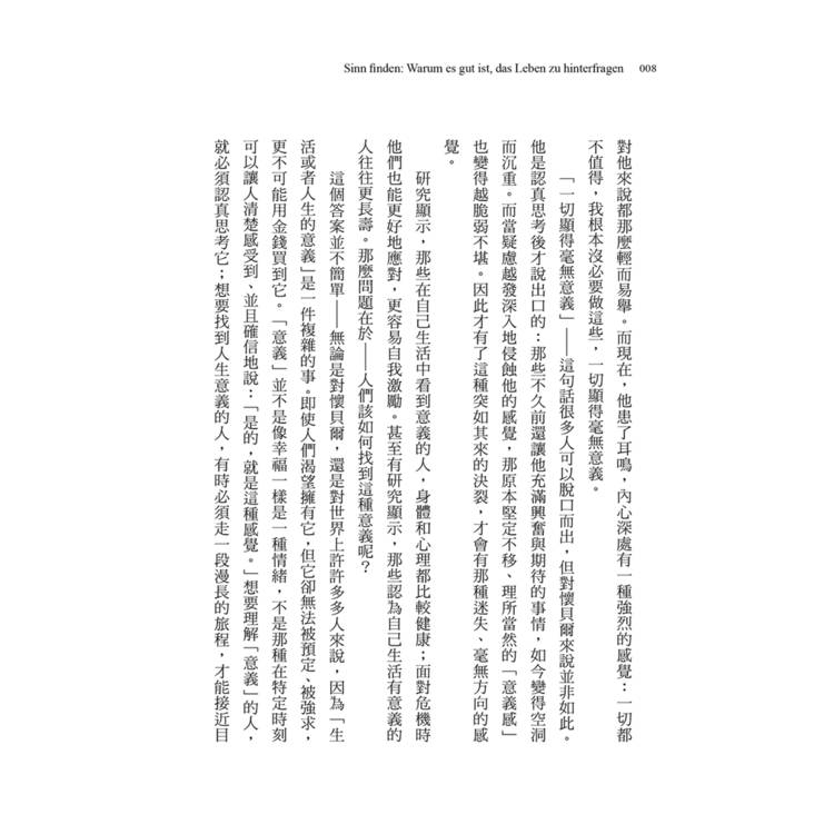 結合心理學、哲學、社會學等理論與觀點,多角度深入探討生命中的意義感,助你以積極行動,面對你的「意義危機」。