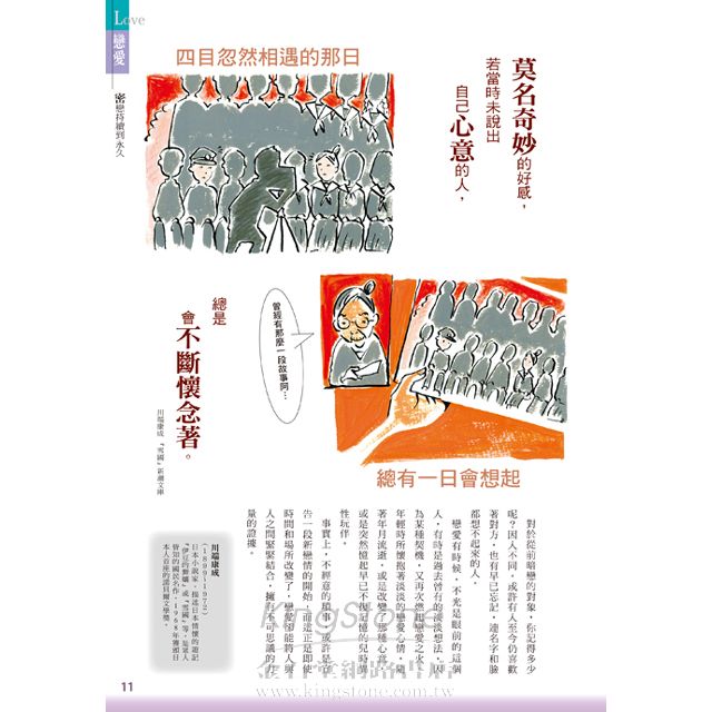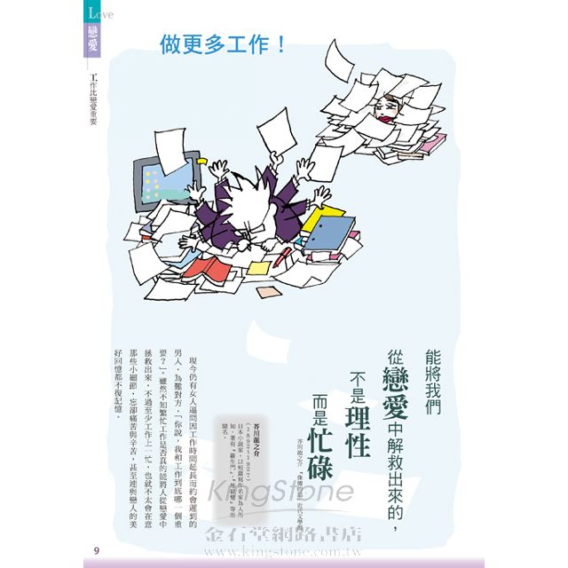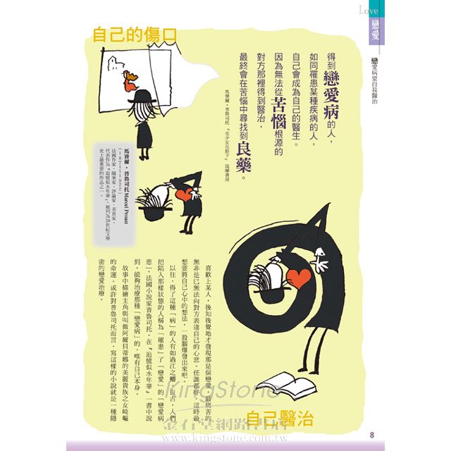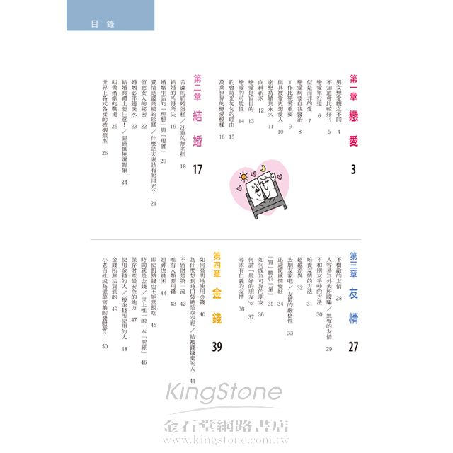 戀愛、結婚、友情、金錢、工作、孤獨、失敗、未來,全八章古今中外的100句名言,搭配獨特風格的漫畫與插圖解說,讓你完全讀懂,不自覺就能理解!