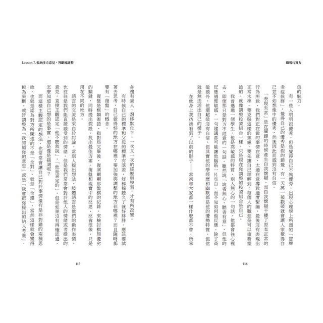 如果你可以回去跟年輕的自已對話,你會想跟他說什麼,我想我會帶著這本書,讓我在菜鳥初期就學會如何有效溝通跟增加好感度。我誠摯推薦這本書給年輕的您或不年輕像我一樣的朋友,都會收穫滿滿,內化然後再次提升自己。——張聰麒∣遠見眼科集團 總院長