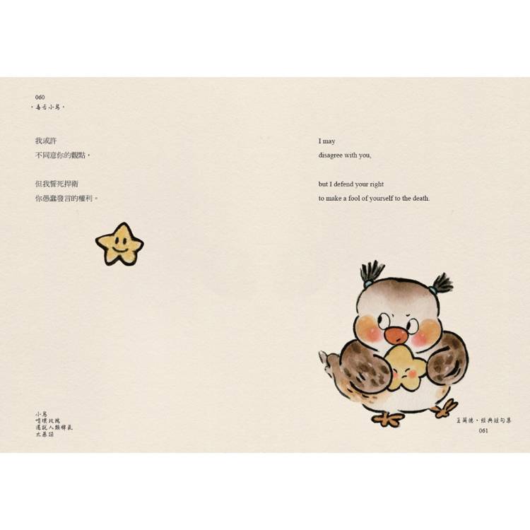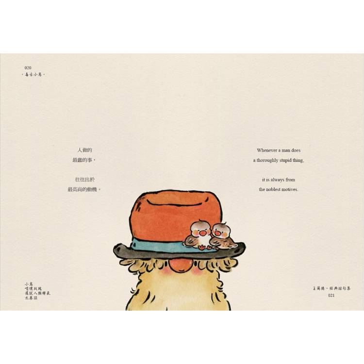 以中英對照呈現,賞析王爾德原文之美。搭配呆萌的小鳥插圖,以簡單純粹的視角,解讀人類世界的生活哲學,重新構建自己的內心秩序。