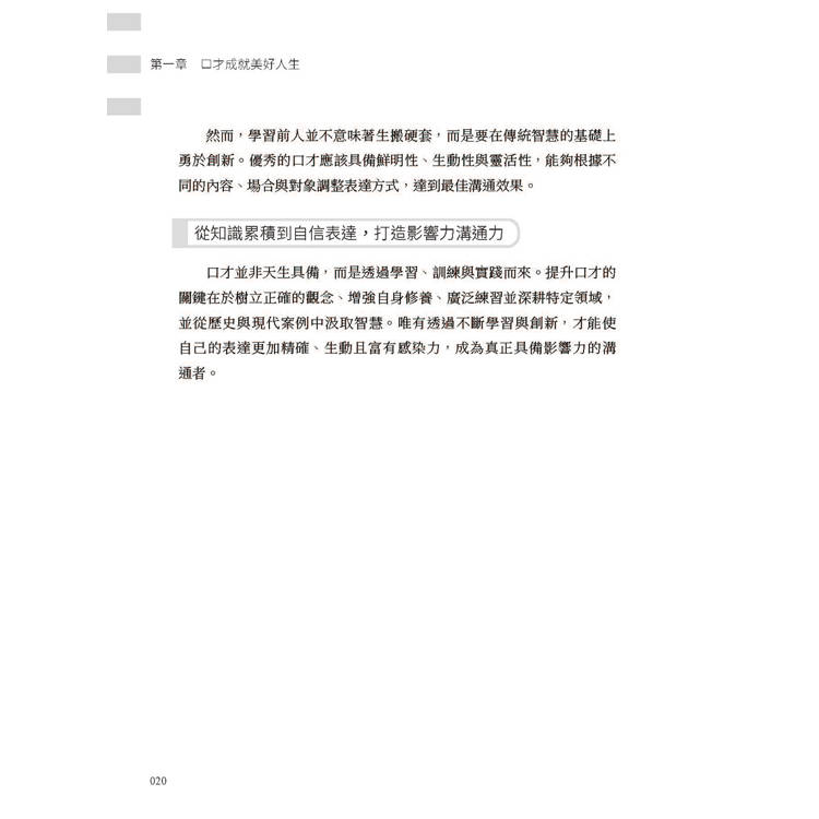最終,讀者將能夠在各種社交場合中靈活運用所學,建立起可靠的人際支持和網路。這些技巧不僅有助於提升溝通效果,還將成為拓展職場和社交圈的不二法門。透過系統學習和應用這些技巧,讀者將受益匪淺,能夠在各種場合中展現出色的口才實力。