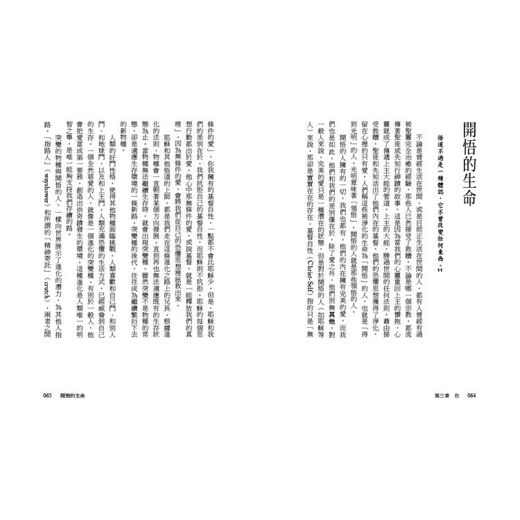 對於這段文字,我記得當時若不是感覺它很傲慢,就是覺得很有意思。但是,繼續讀下去後,發現整本書中充滿了傳統基督教的用語,這一點立刻讓我敬謝不敏。雖然我在學校時上過基督教神學的課,但始終僅止於智性上的理解。那一刻,我感覺到一種強烈的壓迫感襲來,於是把書又放回桌上。