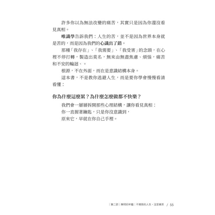 ◎本書結合唯識學、心理學、神經科學與靈性實證,帶領我們一步步鬆開「我執」的枷鎖,走向眞正的自由與安然。
