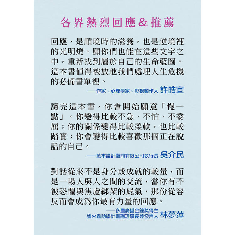 推薦序 回應,是逆境裡的光明燈 許皓宜