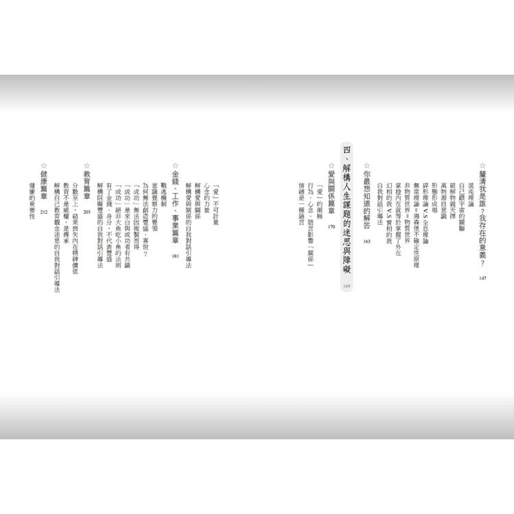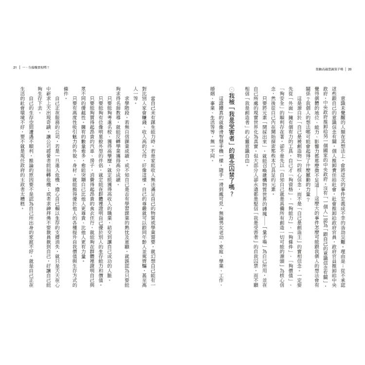透過實踐本書裡的指引,幫助你破除人生中關於愛、金錢、成功、健康等方面的迷思與困境,為你的心靈帶來更寬廣、平靜、清澈、喜悅、豐盛的體驗,開啟意識的真正覺醒。