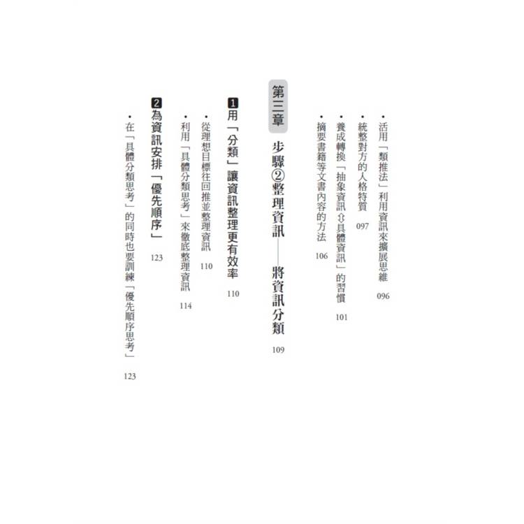 •     整理資訊:如何將資訊分類,讓整理更有效率?不只分類,更要為資訊安排「優先順序」來創造出資訊的結構性與層次感。
