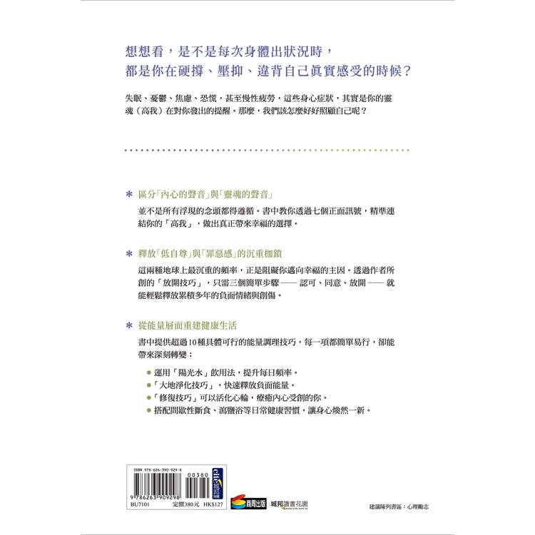 從活化心輪、與大自然連結,到調整日常飲食與睡眠習慣,作者提供了一套完整的能量調理方案,幫助你從根本提升身心頻率,讓疾病無法在高頻狀態下存續。書中提供超過10種具體可行的能量調理技巧,每一項都簡單易行,卻能帶來深刻轉變。: