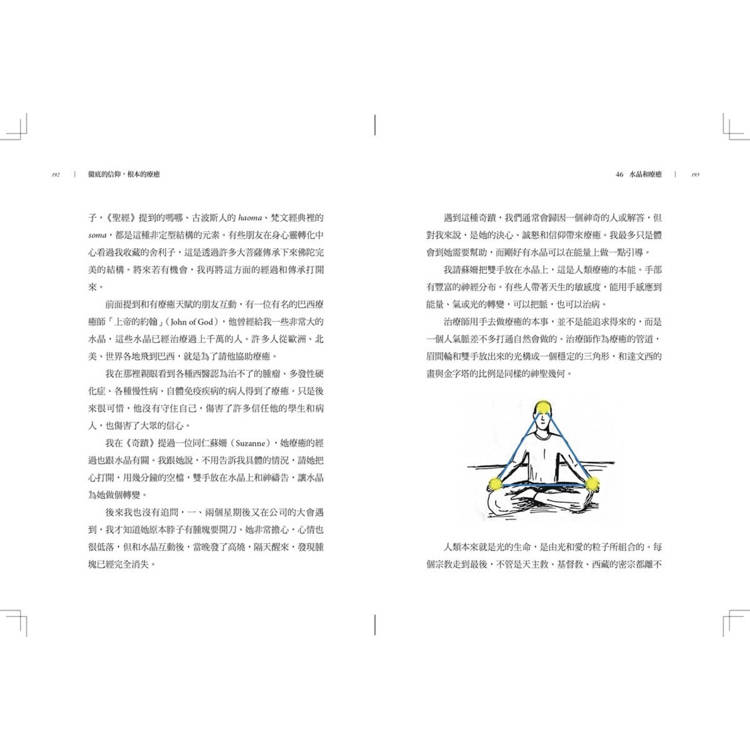 此外在這本書,我並沒有著墨太多一般人認為和信仰相關的、神奇的療癒。剛回亞洲時,常有朋友問我是不是親眼見過這類超越理性、不可思議的突然療癒。我通常只是笑著點點頭,不願多談,因為對我而言,那並不是重點。但如果被追問到底,我也會坦白承認──當然見過,而且看過成百上千個案例;至於我自己是否曾參與過這類療癒,答案也是肯定的。