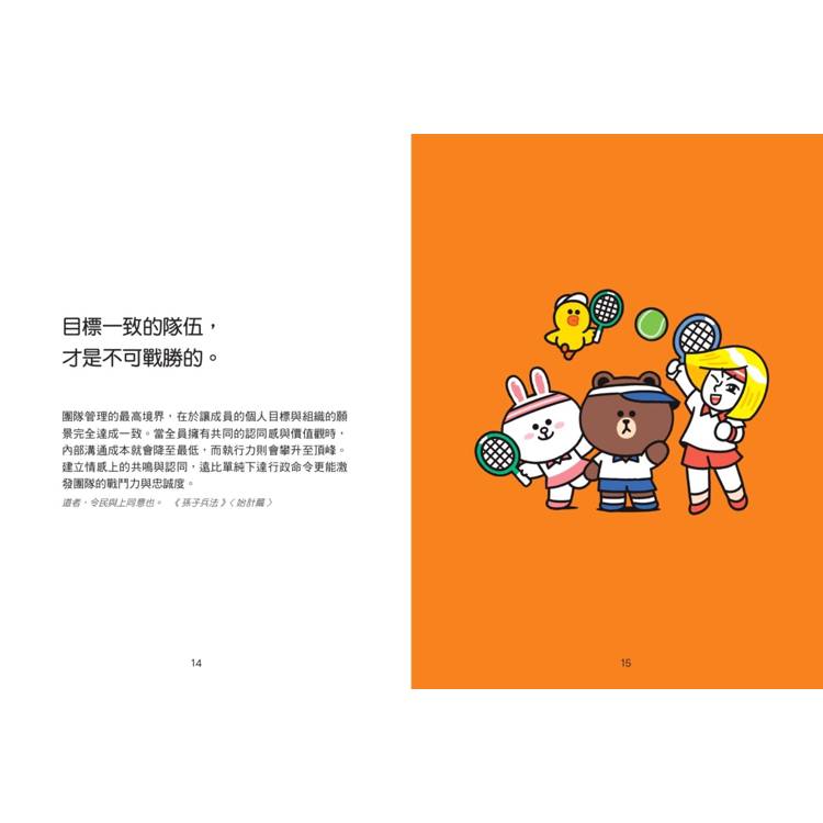 本書精選70句孫子的經典著作《孫子兵法》, 搭配 LINE FRIENDS 的部長與詹姆士, 用可愛的插圖, 傳遞決策、溝通、競爭與領導力的哲理。