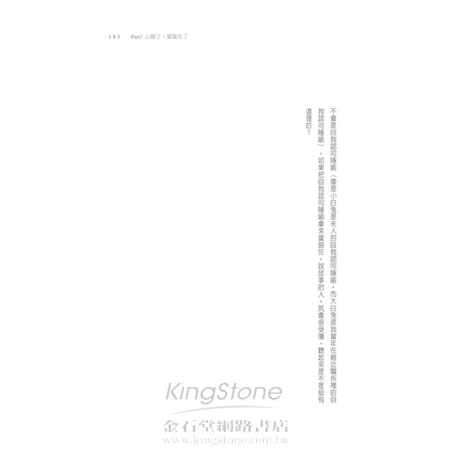 在書裡,常看到哈克這類的自我對話:「痛苦坐在床頭生悶氣的我,問自己說:怎麼會這樣?沒有其他的可能性嗎......下次如果又重演一次這樣的戲碼,我可以加入哪些新的好東西?」其實這幾年,我觀看在關係裡受困的哈克,讓我最佩服的是:即便他被KO倒地,每次只要他能量稍微回復,就會掙扎站起,回過身來,看看有沒有辦法能讓關係裡的愛,繼續流動。所以哈克幾乎是我看過,最願意也最能夠在親密關係裡「研發新方法」的人。因此這本書裡集結了許多哈克獨家研發的法寶,說著關係如何親近?困境如何突破?有步驟、有句型,所以,這是一本可以具體操作的實用手冊。