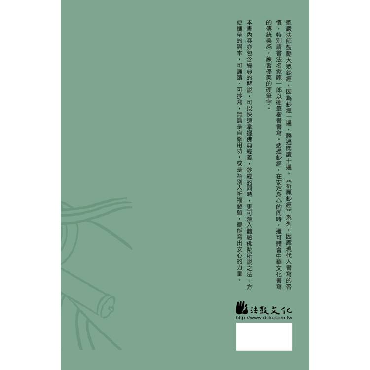 .精緻的設計、方便攜帶的開本,可誦讀、可抄寫,無論是自修用功,或是為別人祈福發願,都能寫出安心的力量。