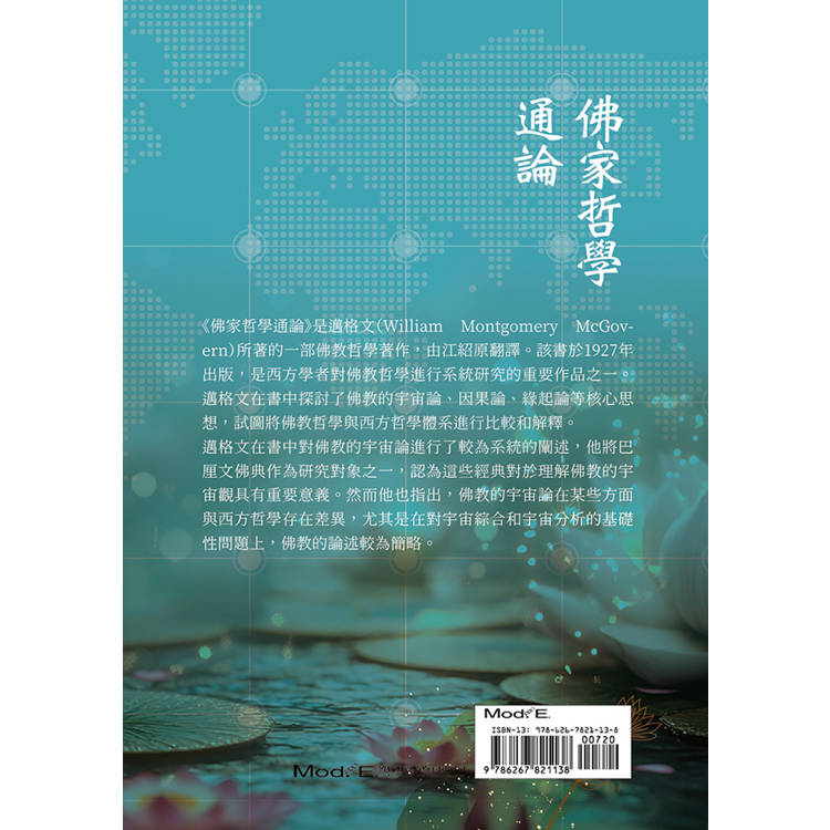 《佛家哲學通論》是邁格文(William Montgomery McGovern)所著的一部佛教哲學著作,由江紹原翻譯。該書於1927年出版,是西方學者對佛教哲學進行系統研究的重要作品之一。邁格文在書中探討了佛教的宇宙論、因果論、緣起論等核心思想,試圖將佛教哲學與西方哲學體系進行比較和解釋。