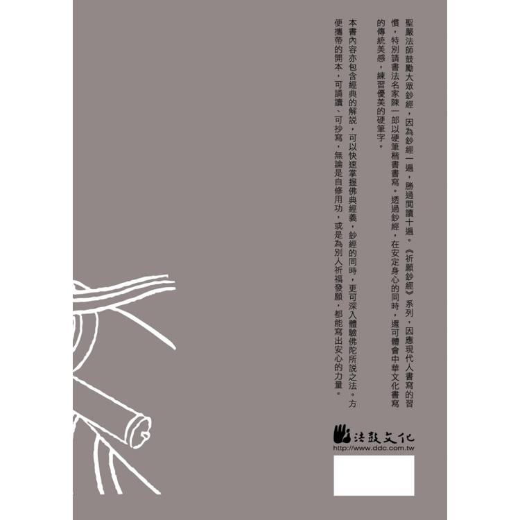.精緻的設計、方便攜帶的開本,可誦讀、可抄寫,無論是自修用功,或是為別人祈福發願,都能寫出安心的力量。