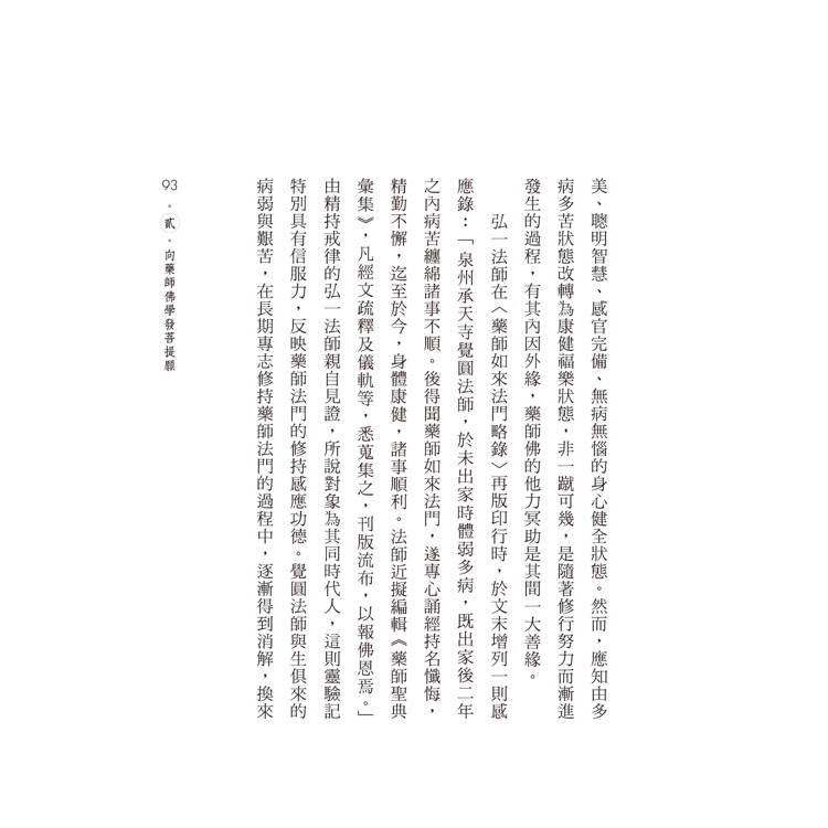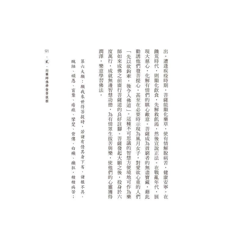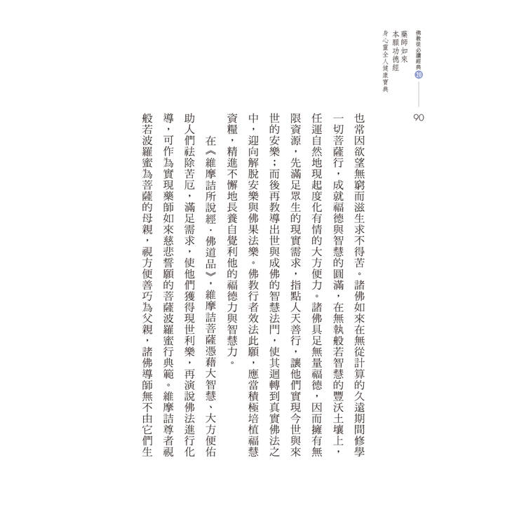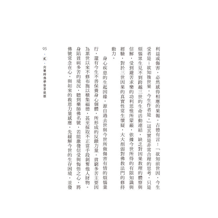 《藥師經》是釋迦牟尼佛與藥師如來共同演示的深妙智慧德相境界,詮說解行雙修、自他兩利的大乘佛教意趣,引領讀誦者在繁忙人生歷程當中實現福慧生活,獲得生命安頓,進而趣向菩薩精神境界。本書對這部經典重新進行現代釋讀,著眼於揭示其實踐意義與價值,闡釋經中的佛法智慧與修持行法,及彰顯藥師法門有益身心靈健康的功用。全體篇章涵蓋藥師法門的歷史行旅、向藥師佛學發菩提願、藥師經典指示菩薩行、藥師儀軌易行功德妙,及琉璃世界人間淨土行,解明此經如何促進福慧增長、全人健康、生死自在,資益人間淨土建設。通過本書認識《藥師經》思想與法門之後,進一步實踐對經典的受持、讀誦、講說、如說修行,這是佛陀教導的次第學經方法。