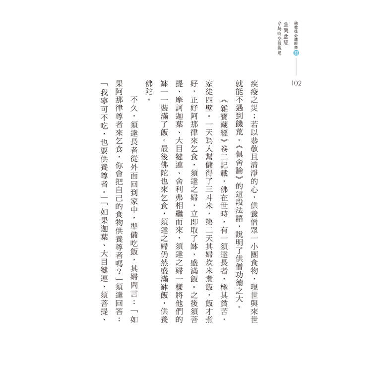 從佛教藏經中精選出適合現代人閱讀的30本經典,以「看得懂、用得著」為寫作理念,將深奧義理化為平易近人的文字,期能在日常中運用佛理化解人生煩惱。