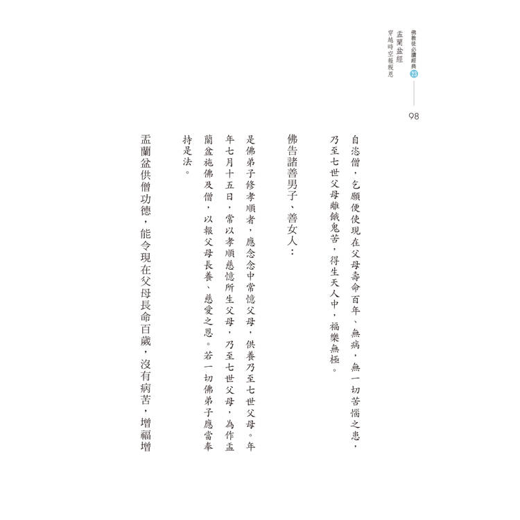 農曆七月孝道月諷誦的經典,也是佛教孝道經典之一,