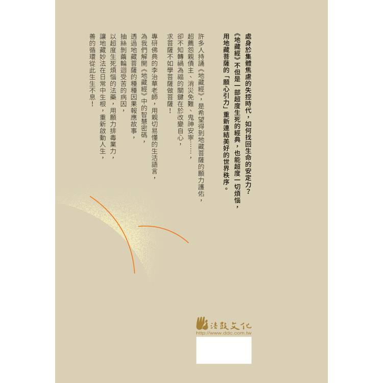 許多人持誦《地藏經》,是希望得到地藏菩薩的願力護佑,超薦怨親債主、消災免難、鬼神安寧……,卻不知轉禍為福的關鍵在於改變自心。當你完全接納真實的自己,生命才會真正蛻變。《地藏經》不只是一部用來消災、祈福的經典,經文中精彩的故事情節、人物與數字密碼等,都蘊含著深刻的法義,其中的業力法則,不只決定了禍福,更決定了生死。