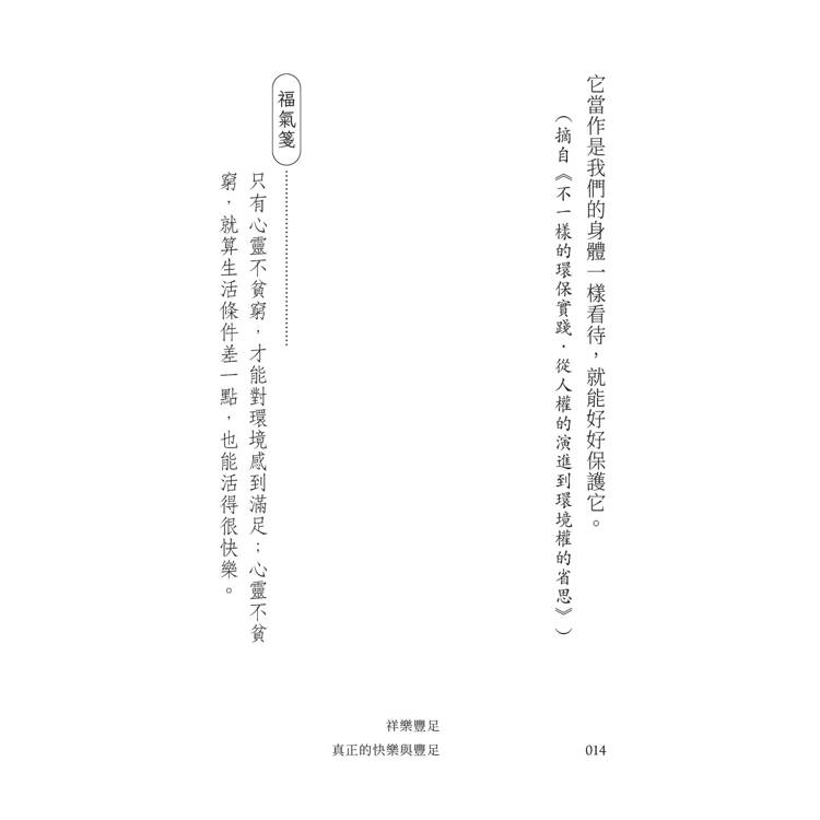 你滿意現在的生活嗎?在消費至上的時代,我們擁有的物質享受愈來愈多,但是快樂卻愈來愈少。面對經濟不景氣、世界大變局,清楚自己需要的究竟是什麼,才能找到心滿意足的幸福平衡點。