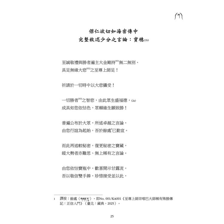 ✻特色一:No. 003/KA003《密傳寶穗》是克主傑的No. 001/KA001《正信入門》及蔣悲嘉措的No. 002/KA002《嘉言總集》的輔助傳記。