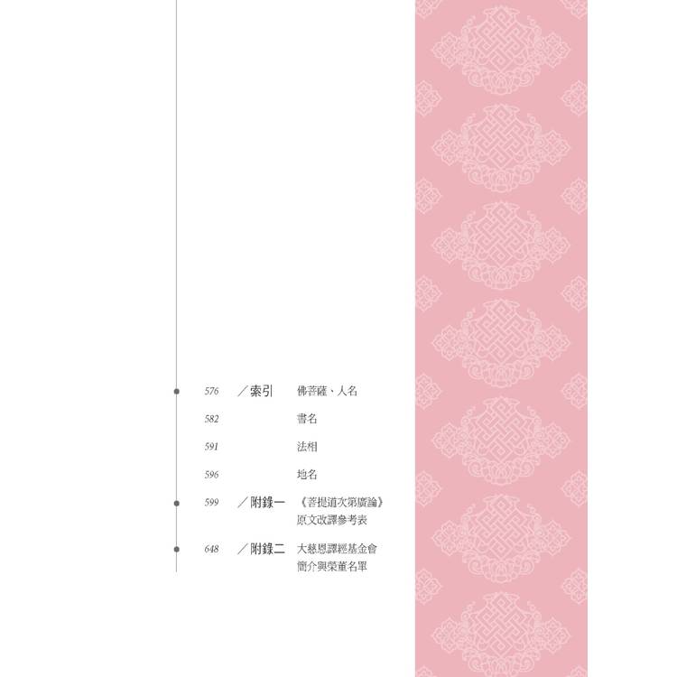 但佛陀找到了這種痛苦的解藥。所有成佛之路的艱辛與偉大,只是為了不忍眾生苦的堅忍探索。偉大的佛陀成功地渡越了生死的大海,並擁有令有情眾生得以渡越的方便。那方便即是八萬四千法要-浩瀚的典籍所詮說的自度度他的不二法門。而《菩提道次第廣論》以三主要道詮釋佛經的要義,是一個補特伽羅從凡夫到成佛所有的次第無所缺少的殊妙法門。自從宗喀巴大師造論以來,被廣大的修道者奉為不能離開的稀有的引導與難得的助伴。所以道次第的相關著作,多達三百多種,而《四家合註》是其中《菩提道次第廣論》最權威的一個註釋,幸得至尊上師哈爾瓦.嘉木樣洛周仁波切的傳承,福智僧團的法師們認真的學習藏文已二十多年,其中用了近十年完成了從《攝類學》到《戒論》的第一輪五大論的學習課程後,才開始譯經。在量與非量的層層辨析中,力求準確再準確,多方請教大善知識,為求一字的深義,也曾用心良苦,真是為伊消得人憔悴,衣帶漸寬終不悔的真實寫照。
