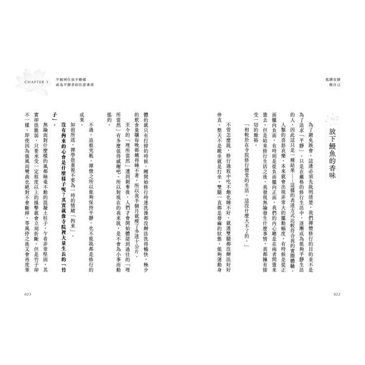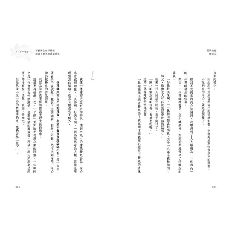 本書透過禪宗的靜心智慧,教你如何聰明地放下無止境的煩惱,好好傾聽自己的內心。我們或許無法改變外在的境遇,卻可以安頓自己的情緒,當你學會專注當下,隨遇而安,不論身體處於何處,心,都能得到平靜。