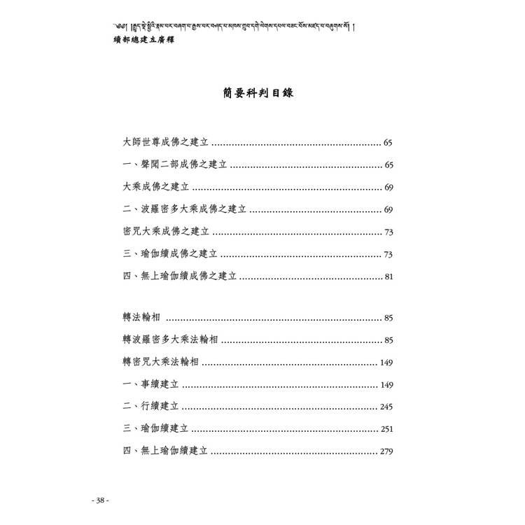 本書分兩大科判:大師世尊的成佛建立及轉法輪相。